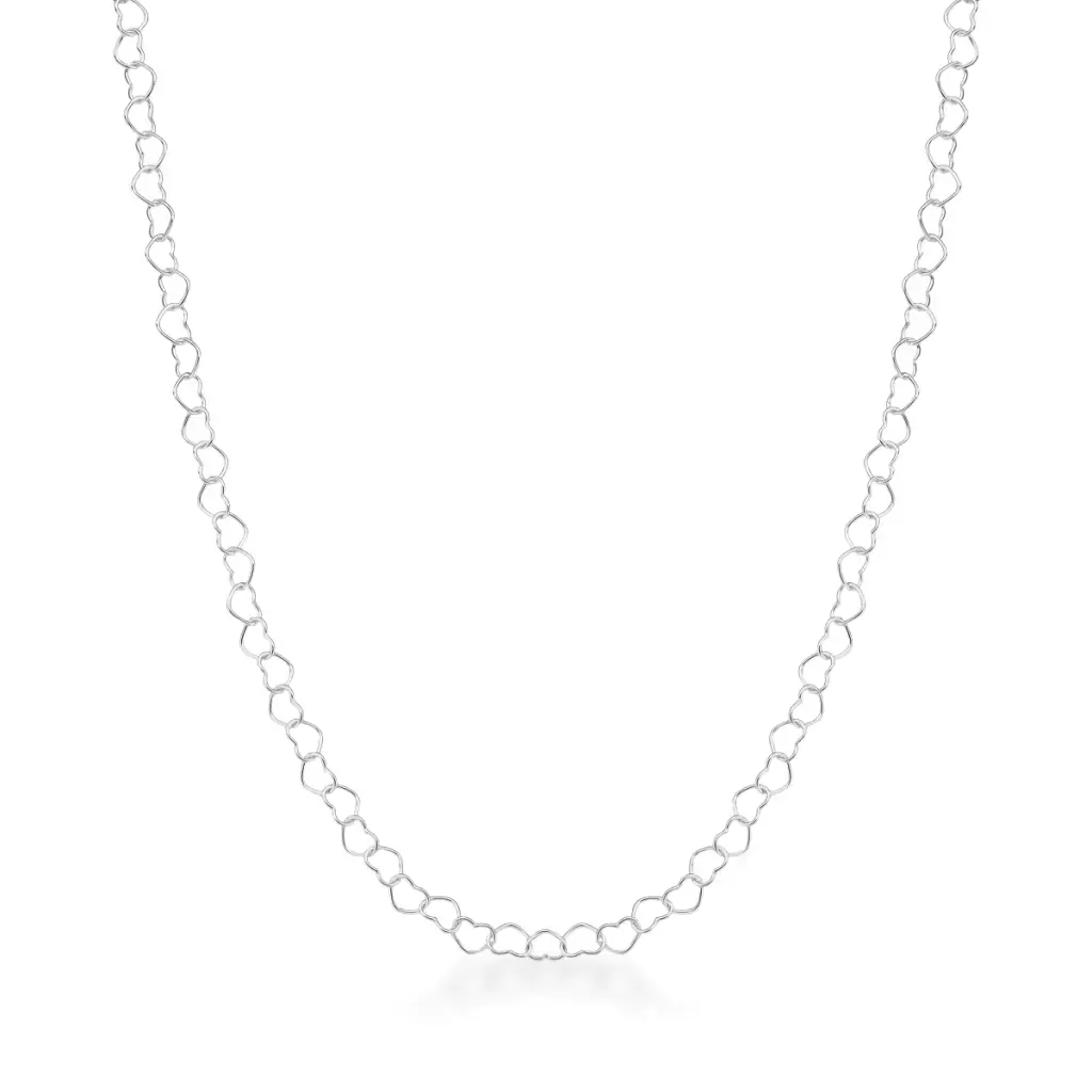 CORRENTE ELO CORAÇÃO FIO 040 50CM , é confeccionado na prata 925 onde 92,5% é prata pura e os outros 7,5% de outros metais, apresenta uma corrente de elo de corações vazados de 50cm de comprimento, é um material de excelente qualidade e durabilidade.